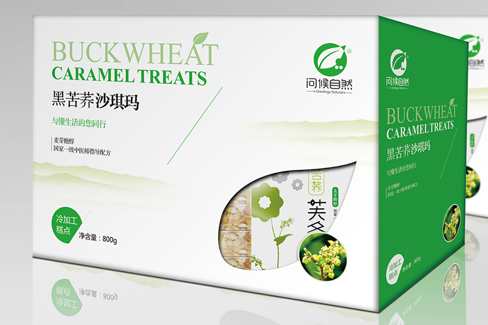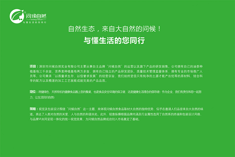 策略:問候自然產品主要針對大型商超和淘寶等市場,原生態、天然有機是其的最大的賣點。在設計上突顯其綠色與健康。