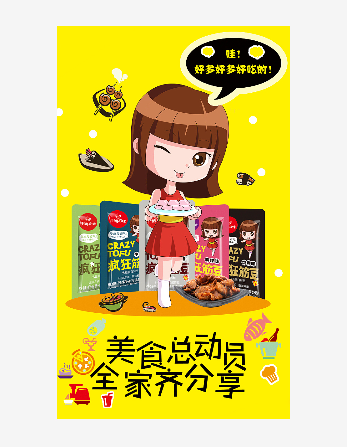 千嬌百味核心產品賣點,滿足美食吃貨愛吃各種美食、味道多、品種多、口味多的消費特性。寓意這里有吃不盡的各種美食,也符合他們挑剔的個性。