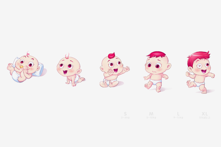 策略:以可愛的蓓秀寶貝,小屁屁形象展開設計,卡通搞笑、幽默。包裝風格以插畫表現形式為主、時尚個性,針對產品屬性及產品形象的要求,