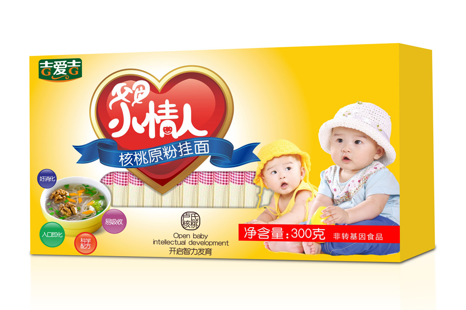 傳統掛面 大縱消費人群,時尚清晰,產品食欲強勁。兒童掛面我們以孩子是父母的小情人為主題設計,同時每款產品口味清晰。
